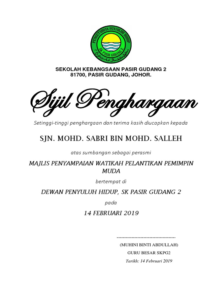 Contoh Sijil Penghargaan Perasmi Pdf